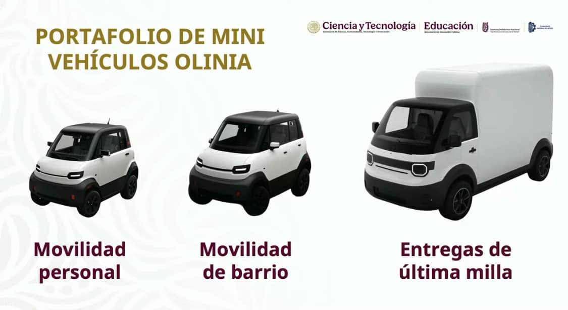 El Gobierno de Claudia Sheinbaum anunció la ceación de ‘Olinia’, una armadora de autos eléctricos con capital estatal y privado, y donde se estarán diseñando tres modelos: Movilidad personal, de barrio, última milla, cuyo precio, dependiendo el modelo, será de 90 mil pesos a 150 mil pesos.