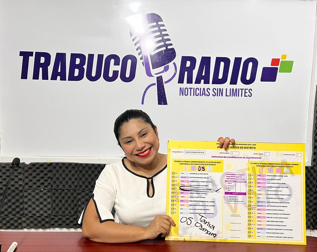 Esta tarde, en el espacio informativo de Trabuco-Radio , estuvo Tania Jiménez Guzmán, quien aseguró que sus 14 años de experiencia en órganos judiciales y en la abogacía, así como su pasión por una justicia digna y sin distinciones, le permitirán desempeñar exitosamente el cargo de Jueza de Distrito.