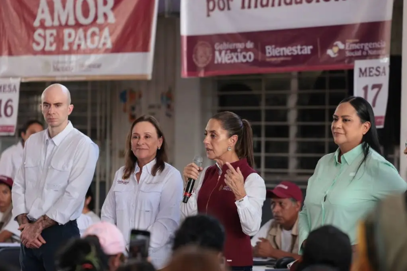 ‘Escuchamos y atendemos las necesidades de todas las familias afectadas por lluvias. No están solas’, expresó Sheinbaum Pardo, acompañada por la gobernadora Rocío Nahle.