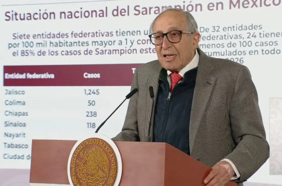 El titular de la Secretaría de Salud, David Kershenobich, que estas entidades registran una tasa por 100 mil habitantes mayor a 1 y concentran el 85 por ciento de los casos de sarampión. Además de tabasco, dichos estados son:
