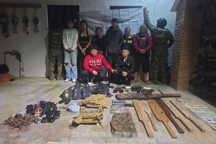 Se trata de cuatro mujeres y cuatro hombres, a quienes se les aseguraron armamento y equipo táctico, tras una persecución de las fuerzas federales a un sujeto al que percataron portando un arma larga.